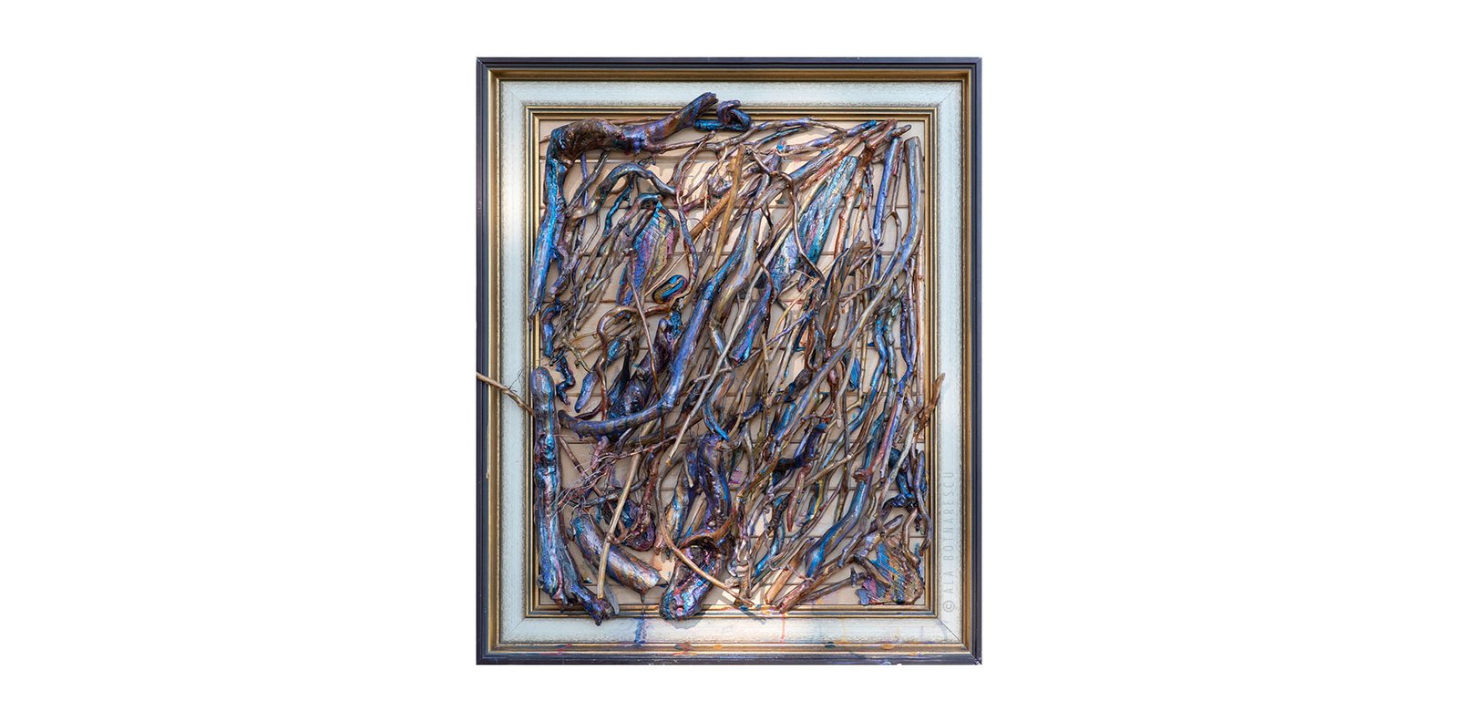 Ob es sich um Kompositionen aus von den Wassern des Bodensees geglätteten Ästen handelt, um Collagen aus natürlichen Elementen, die sich zu organischen Landschaftenverdichten, oder moderne abstrakte Arbeiten –jedes Werk wird behutsam konstruiert, fixiert und auf Leinwand oder stabilen Holzträgern dauerhaft gefestigt.